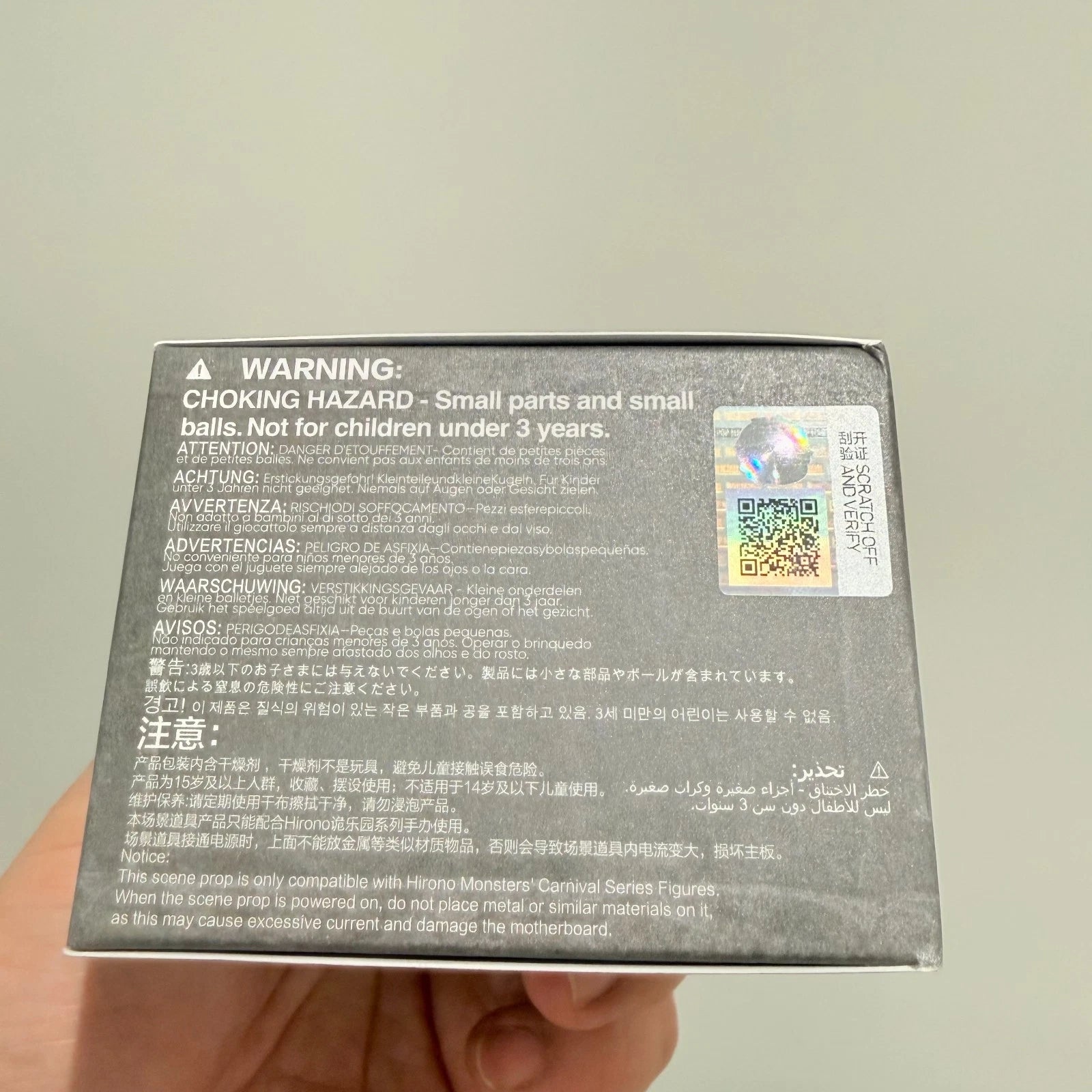 This listing features original POP MART Hirono Monsters’ Carnival figures, each sold together with its matching light base. When placed on the base, the figure lights up, creating an atmospheric glow that highlights the unique details and character design.